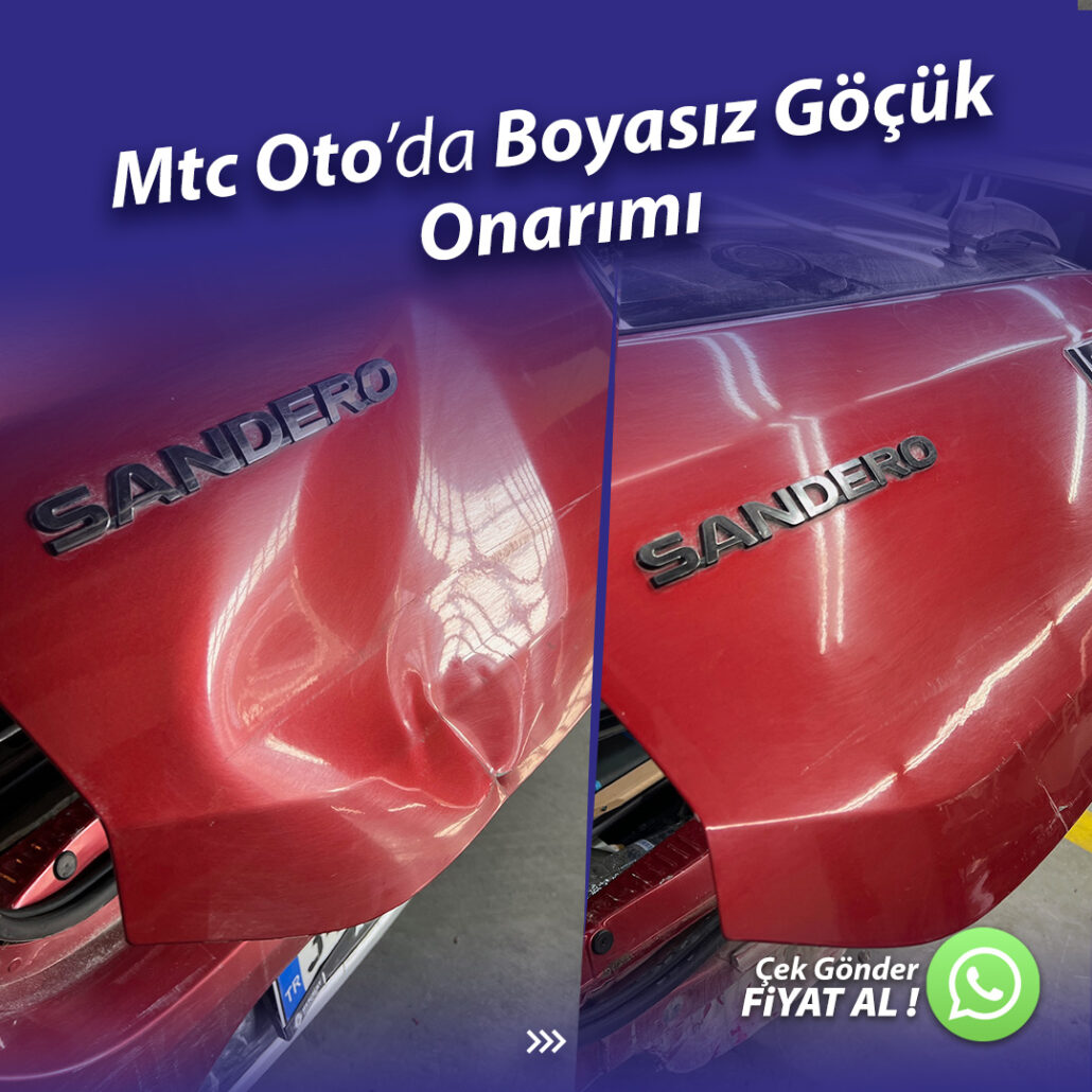 Boyasız Göçük Düzeltme, araçların çeşitli nedenlerle boyasında hiç deformasyon oluşmadan meydana gelen kapı çarpmaları, dolu hasarları, kapı yansımaları, vb. göçükleri MTC know how’ına sahip özel el aletleri kullanılarak işlem dışı masaj yöntemi ile tamir etme uygulamalarıdır.
